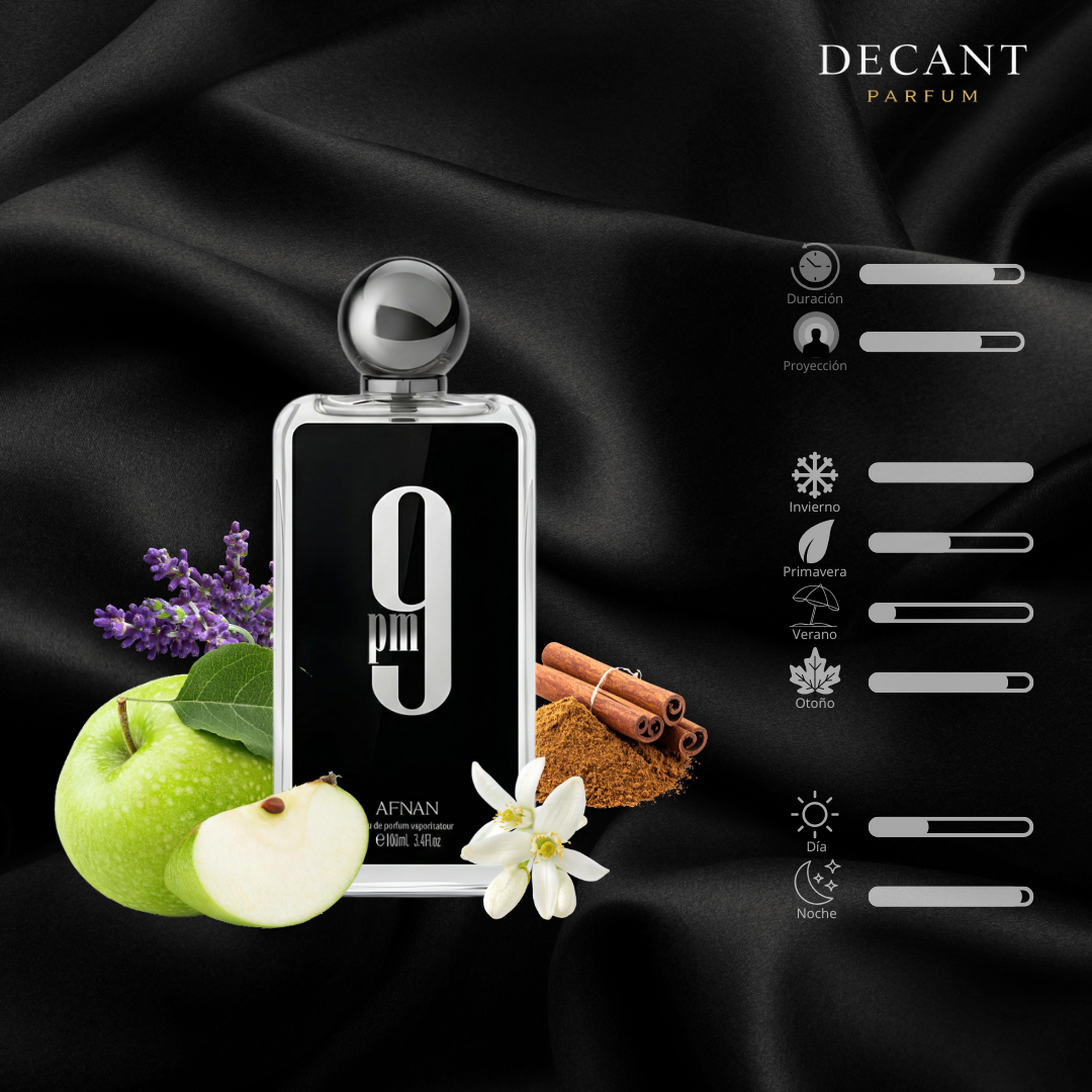 Una fragancia masculina dulce, cálida y adictiva, pensada para la noche. 9PM de Afnan destaca por su carácter oriental gourmand, con una apertura afrutada y especiada que evoluciona hacia un fondo cremoso y envolvente. Muy valorada por su excelente duración y proyección, es ideal para quienes buscan un perfume seductor, juvenil y memorable, perfecto para destacar en ambientes nocturnos.